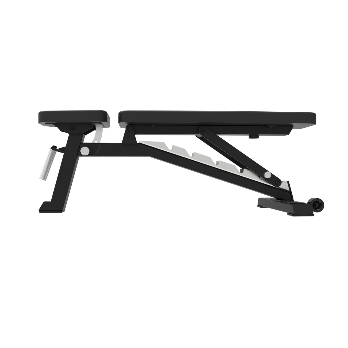 The 1RM Commercial Adjustable Bench (1RM-FIDB) is a heavy duty, commercial grade, fully adjustable bench, with seven adjustment positions from -15 degree decline to 85 degree incline, easily adjusted on smooth bearings.
