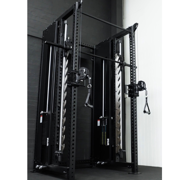 This setup is designed for serious training spaces where space, safety and flexibility matter. You can squat, press, row, pull, lunge and train accessories on the rack side, then move straight to cables or Smith work without breaking flow. It’s a layout that works just as well in a high-end home gym as it does on a busy commercial floor.