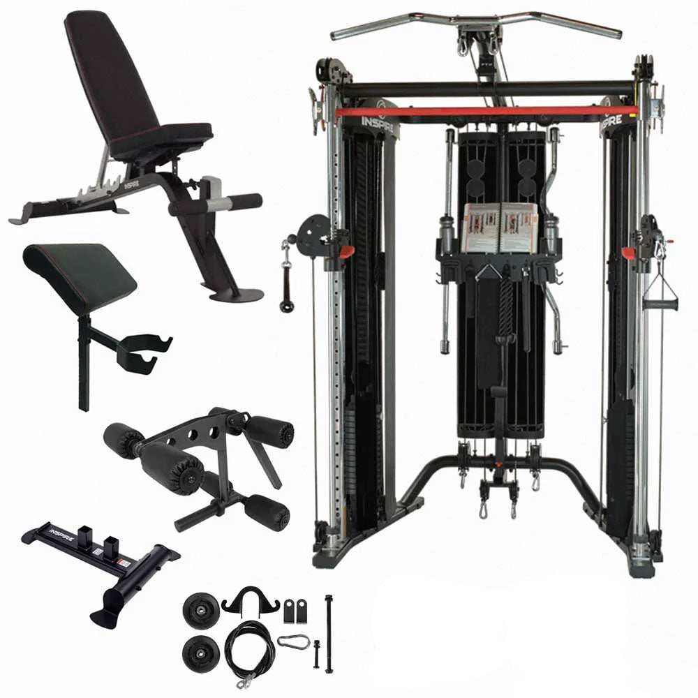 Get the best, most sought after Functional Trainer combo on the market. The Inspire FT2 Fully Loaded package comes with the world renowned Inspire FT2 Functional Trainer and Smith Machine with weight stack upgrades, along with the matching Inspire SCS bench, preacher attachment, leg attachment and the cable kit that ties them all together.